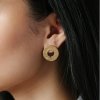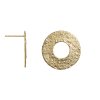 Ručně vyráběné náušnice vznikají otiskem struktury rzi do ušlechtilého materiálu. Povrchová úprava zlacením a hladký geometrický tvar mezikruží zjemňují jinak drsný vzhled šperku.