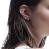 Náušnice jsou k dispozici ve dvou velikostech a čtyřech povrchových úpravách: stříbro, tmavě patinované stříbro, pozlacené stříbro a stříbro pozlacené růžovým zlatem.