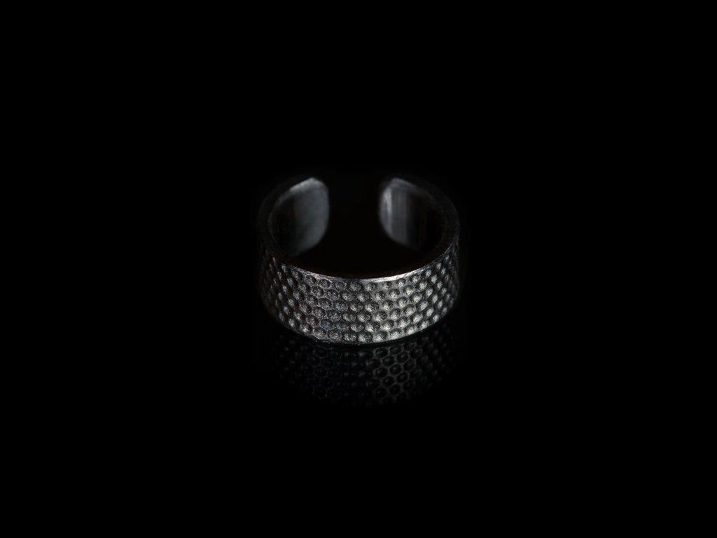 Ručně vyrobený ear cuff z kolekce PRINTI s otiskem struktury náprstku do ušlechtilého kovu.