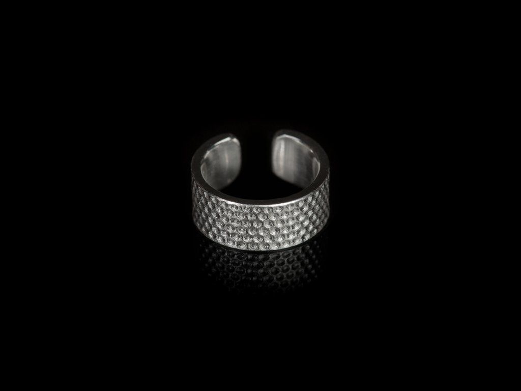 Ručně vyrobený ear cuff z kolekce PRINTI s otiskem struktury náprstku do ušlechtilého kovu.