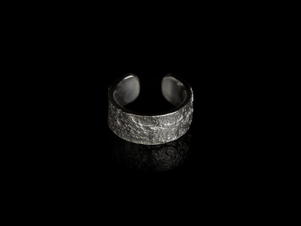 Náušnice se strukturou rzi na povrchu ušlechtilého kovu.